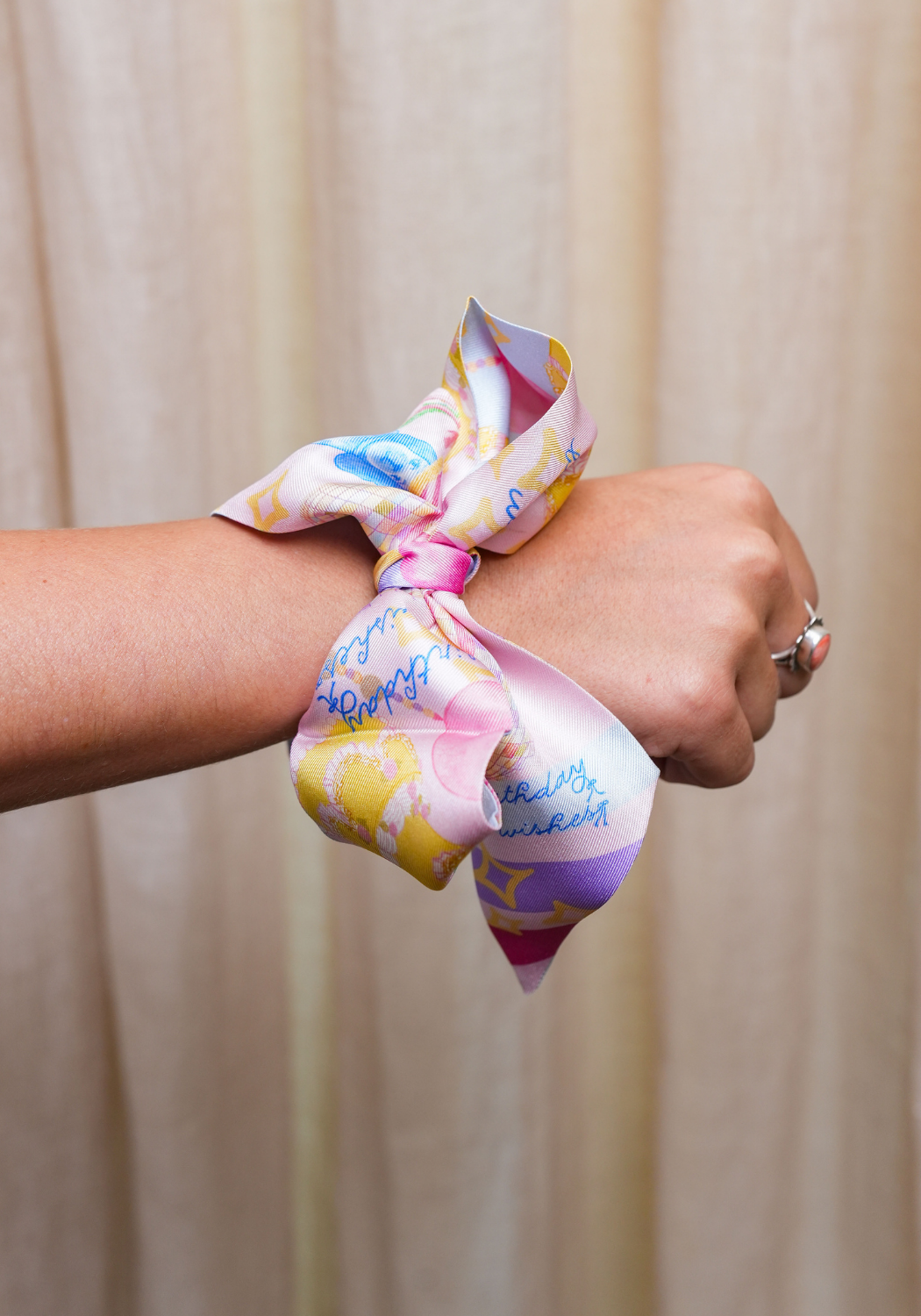 The premium silk fabric ensures this scarflette drapes beautifully however you choose to wear it, while the versatile design makes it a thoughtful gift for the friend who loves to celebrate life's special moments with style. Whether worn for actual birthdays or simply to brighten any day, this scarflette brings a touch of celebratory magic to your accessory collection.