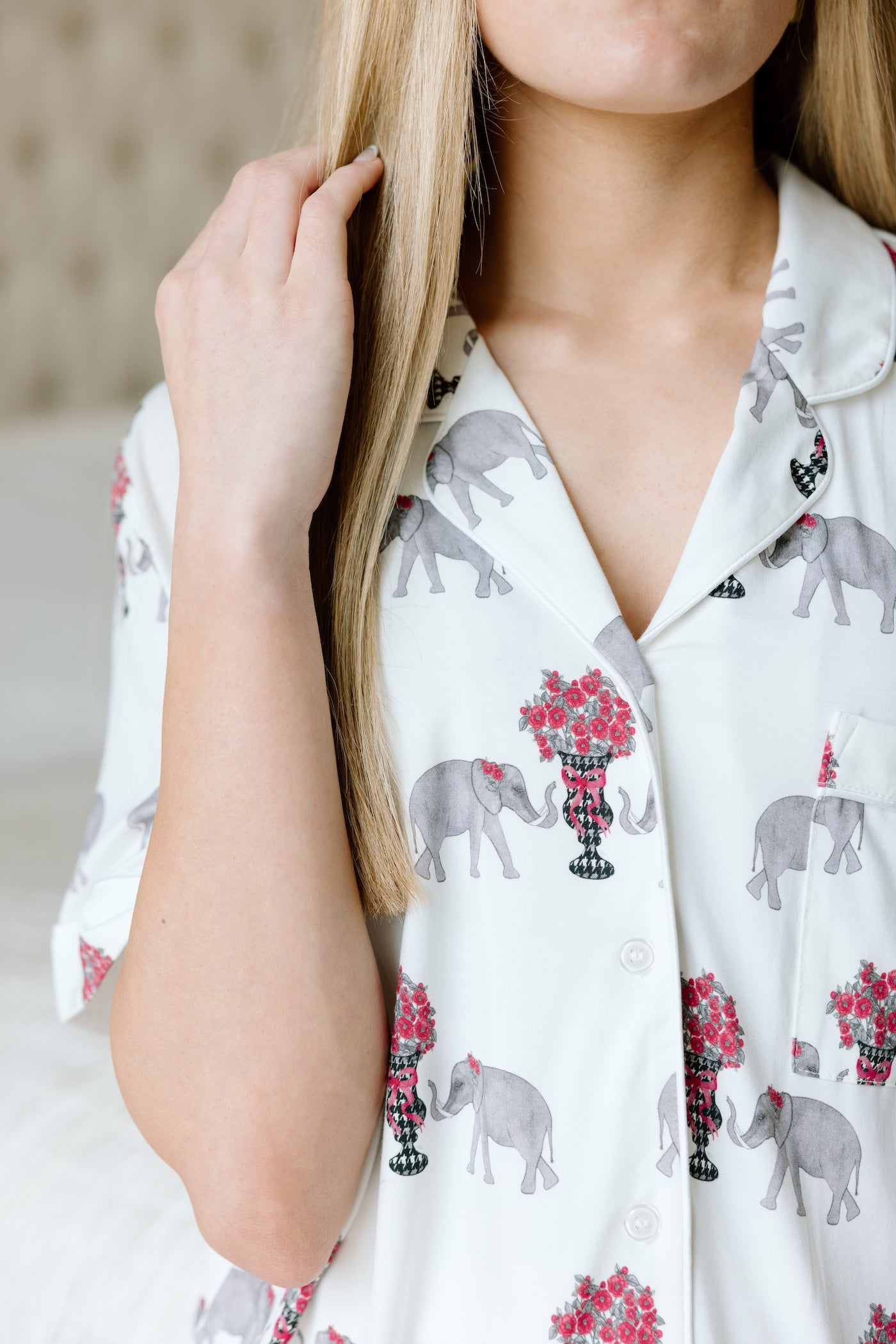 Celebrate elegance and comfort with the Heirloom Pajama Set. This charming sleepwear features an allover print that captures timeless sophistication with a playful, vintage-inspired twist.